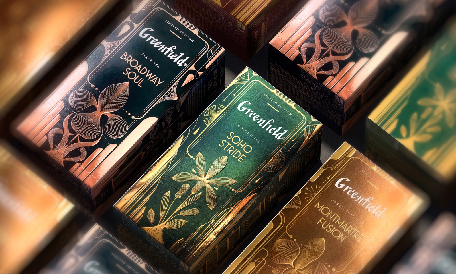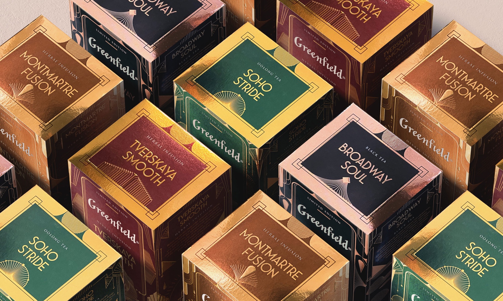 每年,我們都會推出一款新的限量茶系列,其包裝設計獨特,口味獨特。Greenfield Jazz系列致力于爵士樂的偉大時代。每個包裹都有自己的故事。我們將各種風格的圖像與城鎮(zhèn)的建筑風格相結合,而城鎮(zhèn)正是這些音樂趨勢的創(chuàng)始人。靈感來自裝飾藝術美學和爵士樂的杰出范例。