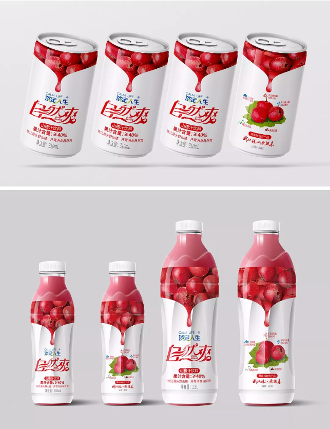 關于淡定人生·山泉水瓶型設計源自淡定人生品牌文化,以中國傳統(tǒng)文化中的太極為原型。自然爽果汁系列,含玉米、山楂、獼猴桃、芒果等,其中玉米汁與山楂汁以上市,其外包裝設計采用果實寫實手法表達,在透露著果肉誘惑之際,傳遞出“七彩云南”之態(tài)。