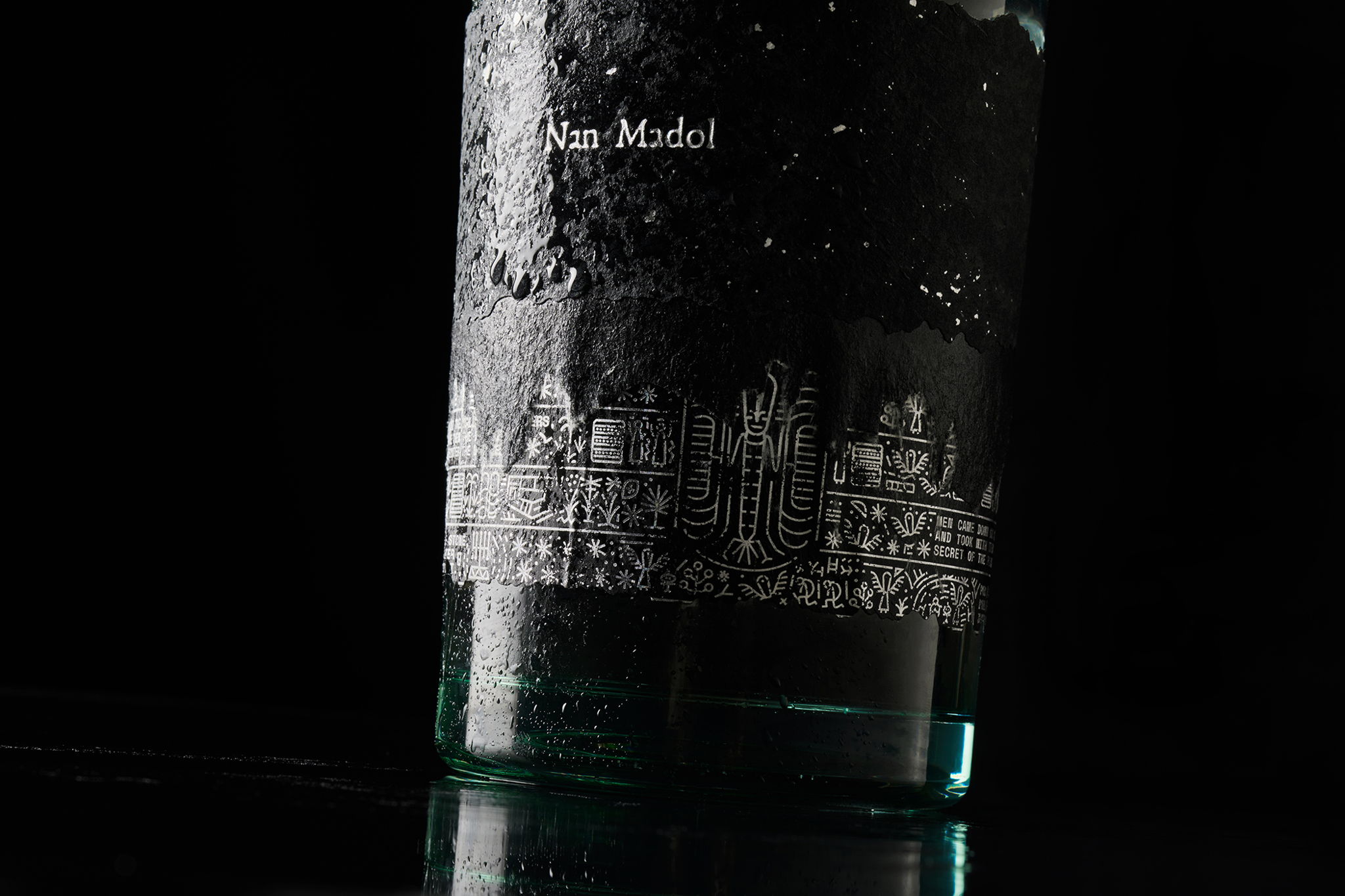 Nan Madol 的瓶子強(qiáng)調(diào)感官體驗(yàn)。由 Estudio Maba 設(shè)計(jì),瓶子的標(biāo)簽呈現(xiàn)為半浸沒(méi)狀態(tài),展示了水對(duì)石頭的影響。使用的材料、可溶解的紙、再生玻璃和紋理玻璃,繼續(xù)增加感官體驗(yàn),創(chuàng)造出一個(gè)神秘的瓶子,同時(shí)讓人感覺(jué)高貴和突出。