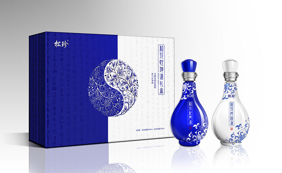 項目背景:“善補(bǔ)陽者,必于陰中求陽,則陽得陰助而生化無窮;善補(bǔ)陰者,必于陽中求陰,則陰得陽生而泉源不竭?!彼苫ㄜ稳鼐啤⑺苫ㄨ近S酒包裝設(shè)計以太極為基礎(chǔ)概念,考慮融合太極、乾坤理念,單品可以銷售,兩瓶酒相聚亦可形成乾坤禮盒。
