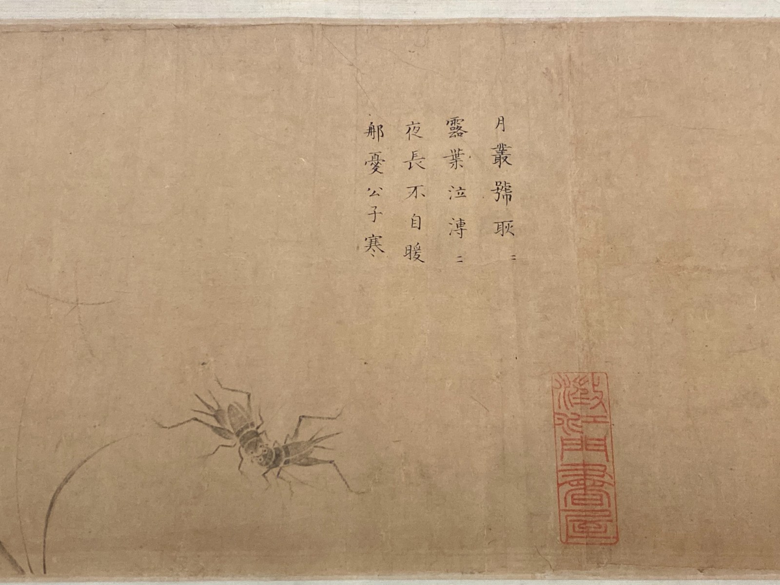 在這一單元中,也展出了王詵的傳世名作《漁村小雪圖卷》。王詵字晉卿,太原人氏,北宋熙寧二年尚蜀國公主為駙馬都尉。他雖為貴戚,但與蘇東坡、黃庭堅(jiān)交往,山水畫學(xué)李成。這件《漁村小雪圖卷》正是他的代表作。 王詵為蘇軾至交。蘇軾對于王詵的繪畫水平評價(jià)極高,他認(rèn)為“駙馬都尉王晉卿畫山水寒林,冠絕一時(shí)”。 該畫描寫冬季小雪初霽的漁村山林景色。圖中雪山奇松,溪岸漁艇,峰迴路轉(zhuǎn),步移景易,整個(gè)畫面意境蕭索,籠罩在一片空靈、靜寂的氛圍之中,雖有漁夫艱苦勞作,但反映的卻是文人逸士向往山林隱逸生活的雅致情懷。這幅作品充分體現(xiàn)了北宋時(shí)文人畫強(qiáng)調(diào)“詩中有畫,畫中有詩”的創(chuàng)作主旨,以嫻熟的技法寫“詞人墨卿難狀之景”,正是“詩畫一律”的典范作品。