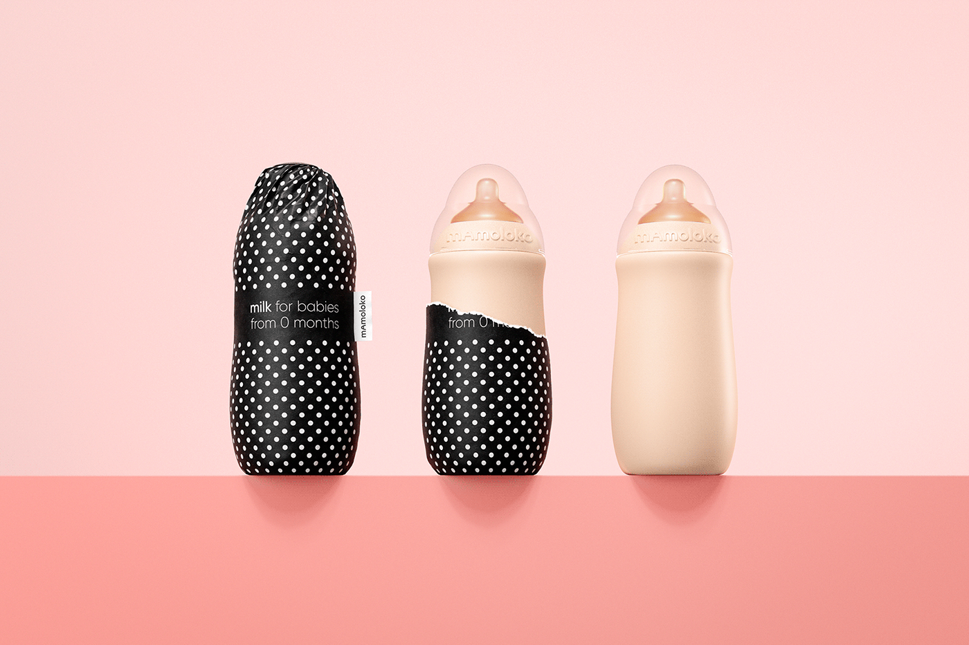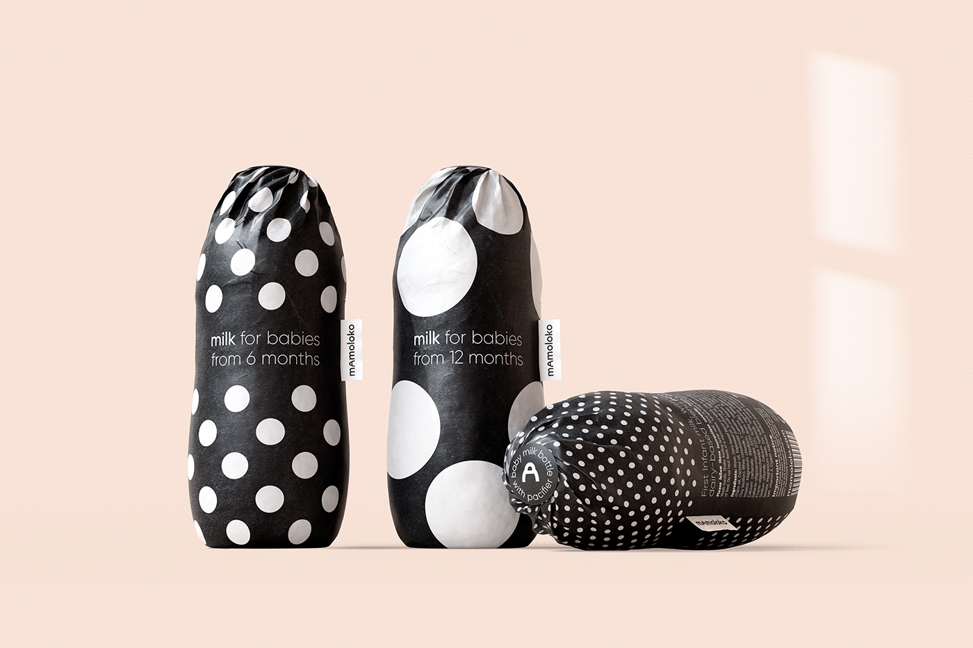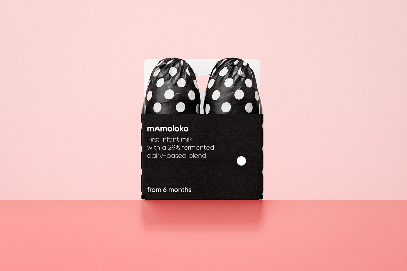 Mamoloko是為年輕現(xiàn)代女性設計的牛奶配方。該包裝看起來像是時尚的配飾,是年輕母親形象的補充。黑白伽瑪與一頭母牛有關。這樣的包裝將在貨架上的其他乳制品中脫穎而出,并且,最重要的是,母親們將很高興看到這種產(chǎn)品。