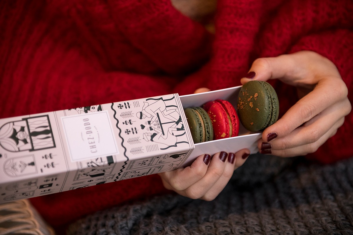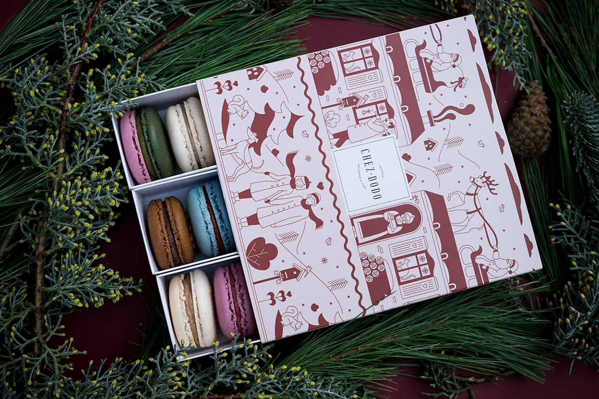 Macaron一詞本是法語,實際發(fā)音較接近“馬卡紅”。“馬卡龍包裝設計“、食品包裝設計