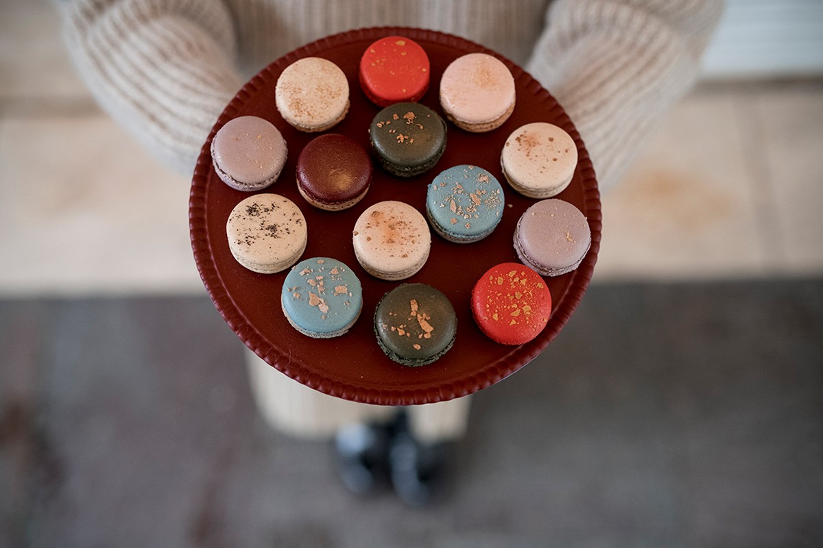 馬卡龍,又稱瑪卡龍、法式小圓餅,是一種用蛋白、杏仁粉、白砂糖和糖霜制作,并夾有水果醬或奶油的法式甜點。口感豐富,外脆內柔,外觀五彩繽紛,精致小巧。