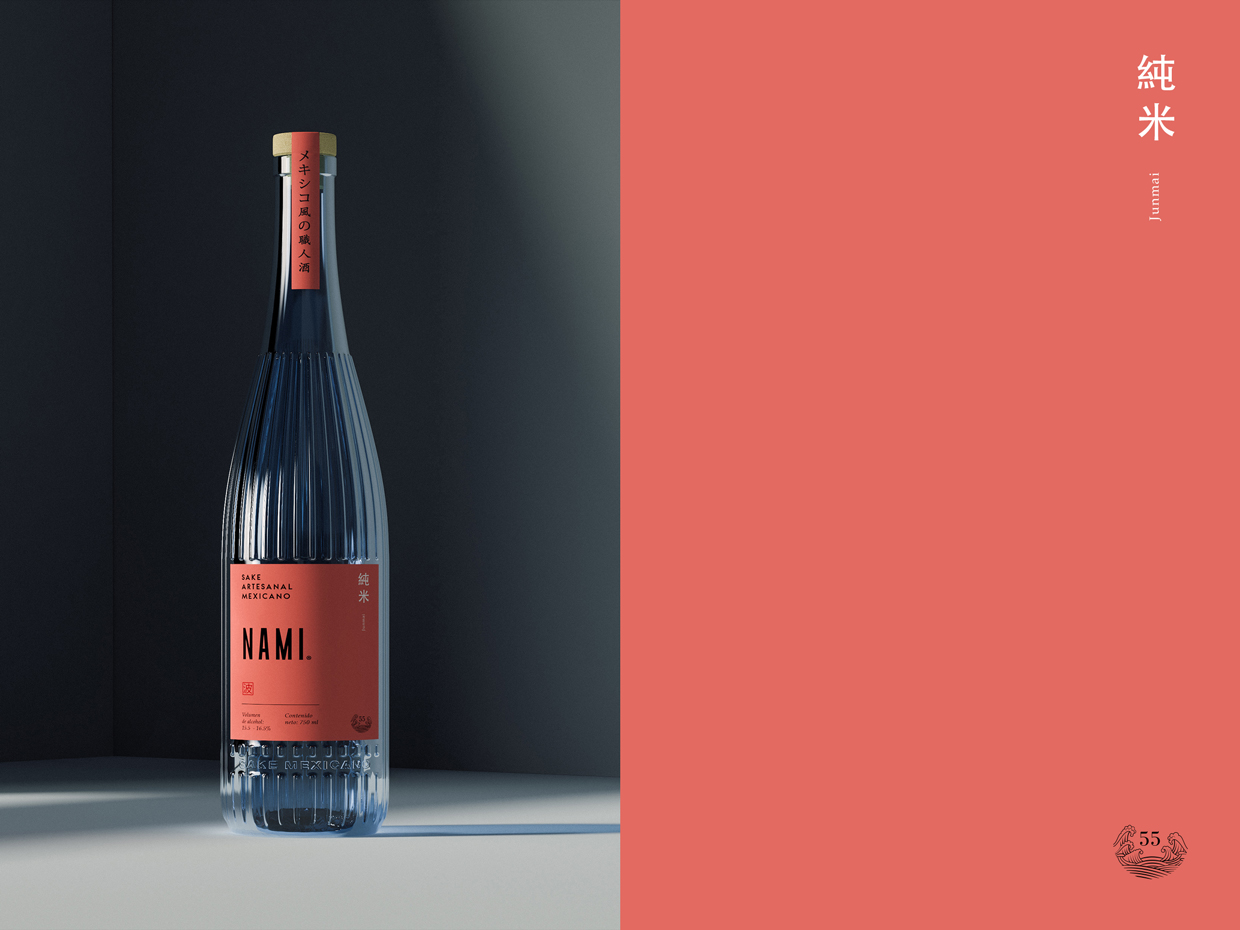 NAMI? 清酒根據(jù)大米的拋光程度分為三個(gè)類別或等級(jí)的清酒。為了區(qū)分它們,我們使用了 3 種不同的玻璃色素和 3 種與玻璃結(jié)合的標(biāo)簽顏色。Jumnai 以藍(lán)色玻璃色和墨西哥粉紅色標(biāo)簽表示,其次是 Junmai Ginjo,它在玻璃上使用綠色旗幟,與標(biāo)簽主體上的米色形成鮮明對(duì)比,我們以黑色玻璃和黑色標(biāo)簽的 Junmai Daiginjo 高級(jí)類別結(jié)束。金色的觸感賦予它經(jīng)典的感覺。