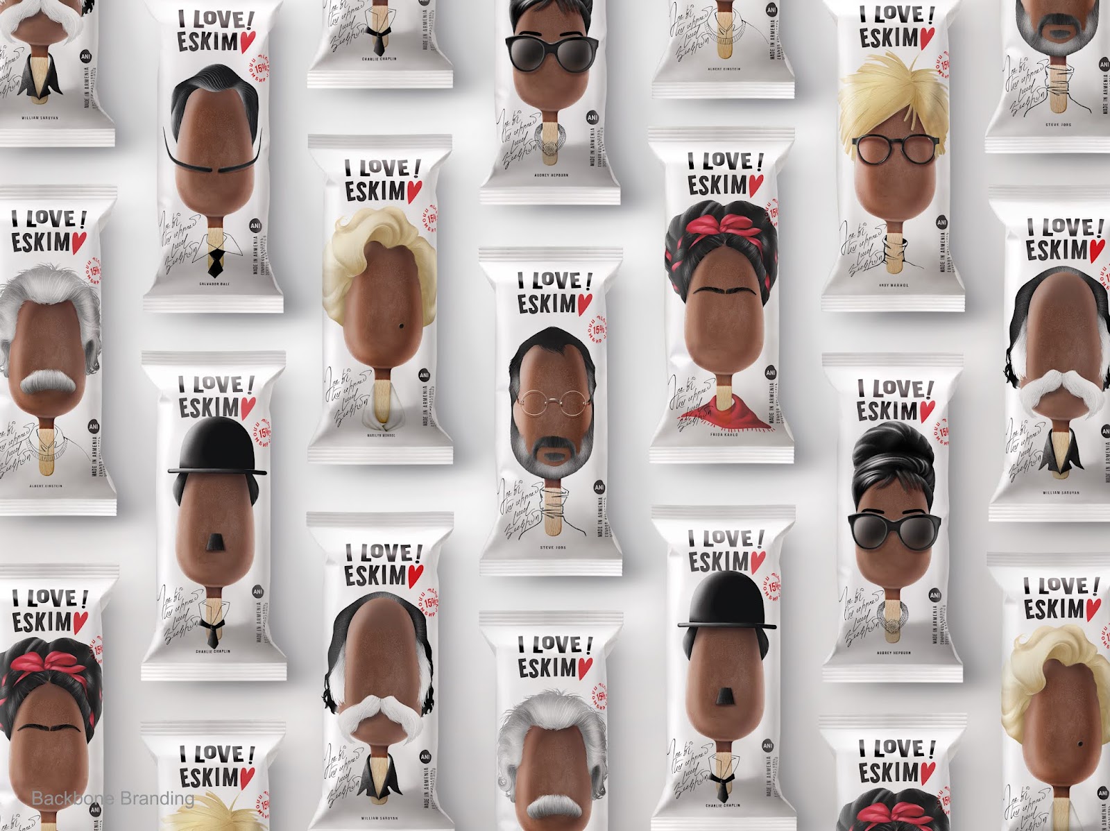 為了避免讓這些人物過(guò)于逼真,以免顧客有吃的感覺(jué),我們展示了這些人物沒(méi)有面部線條的模仿圖像。相反,我們用頭發(fā)、眼鏡、胡子和其他特征來(lái)創(chuàng)造與這些性格的相似之處。冰激凌的棍子充當(dāng)脖子,脖子上掛著一件飾物或衣服,這有助于人們很容易地聯(lián)想到它們。因此,這些提示讓你確切地知道誰(shuí)是個(gè)性:傳遞與他/她相關(guān)的情感和情緒。盡管如此,我們還是在包裝下面提到了他們的名字,這樣如果有人不認(rèn)識(shí)他們,就會(huì)去研究這些杰出人物。