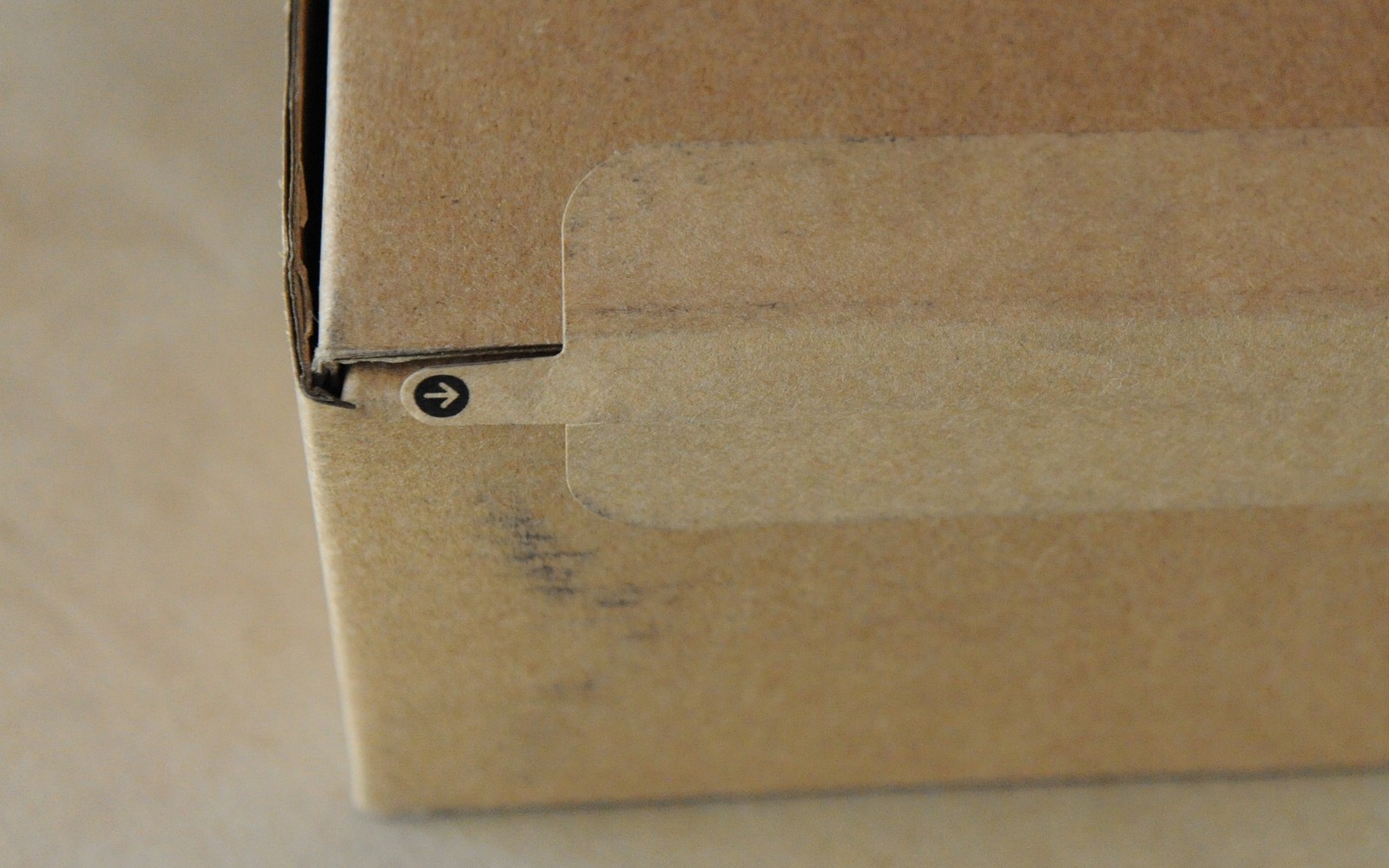 依然是惜墨如金,而使用原色紙則更趨于環(huán)保,蘋果給人的感覺是即重視包裝保護功能,追求環(huán)保潮流,堅決去印刷化。用的是環(huán)保紙膠封,區(qū)別普通快遞塑料膠帶,蘋果良好的用戶體驗被移植到了外包裝上,這個易撕條就是最好的明證。